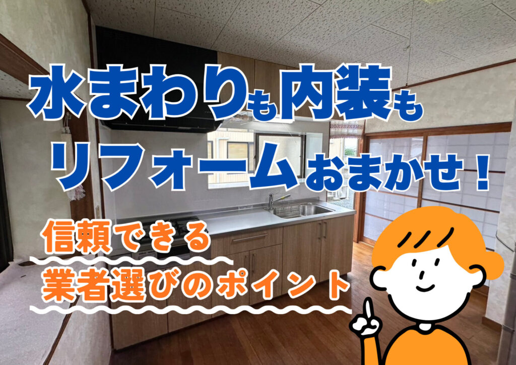 キッチン・浴室・トイレといった水まわりだけではなく、内装や間取り変更などもまとめて相談できる業者には、たくさんのメリットがあります。