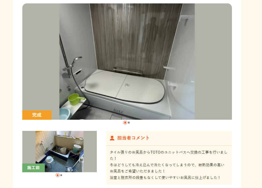 ✅ビフォー/アフターの写真があるのか ✅リフォームの目的や背景が記載されているか ✅依頼した件と似た住宅タイプ・リフォーム内容があるか |