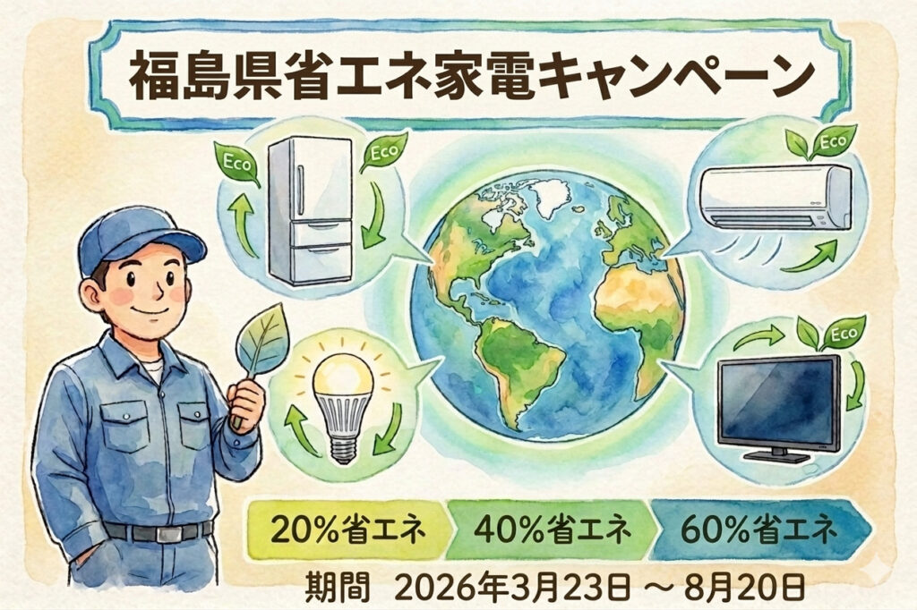 このたび当店は、**福島県「省エネ家電購入応援キャンペーン」**に参加いたしました。