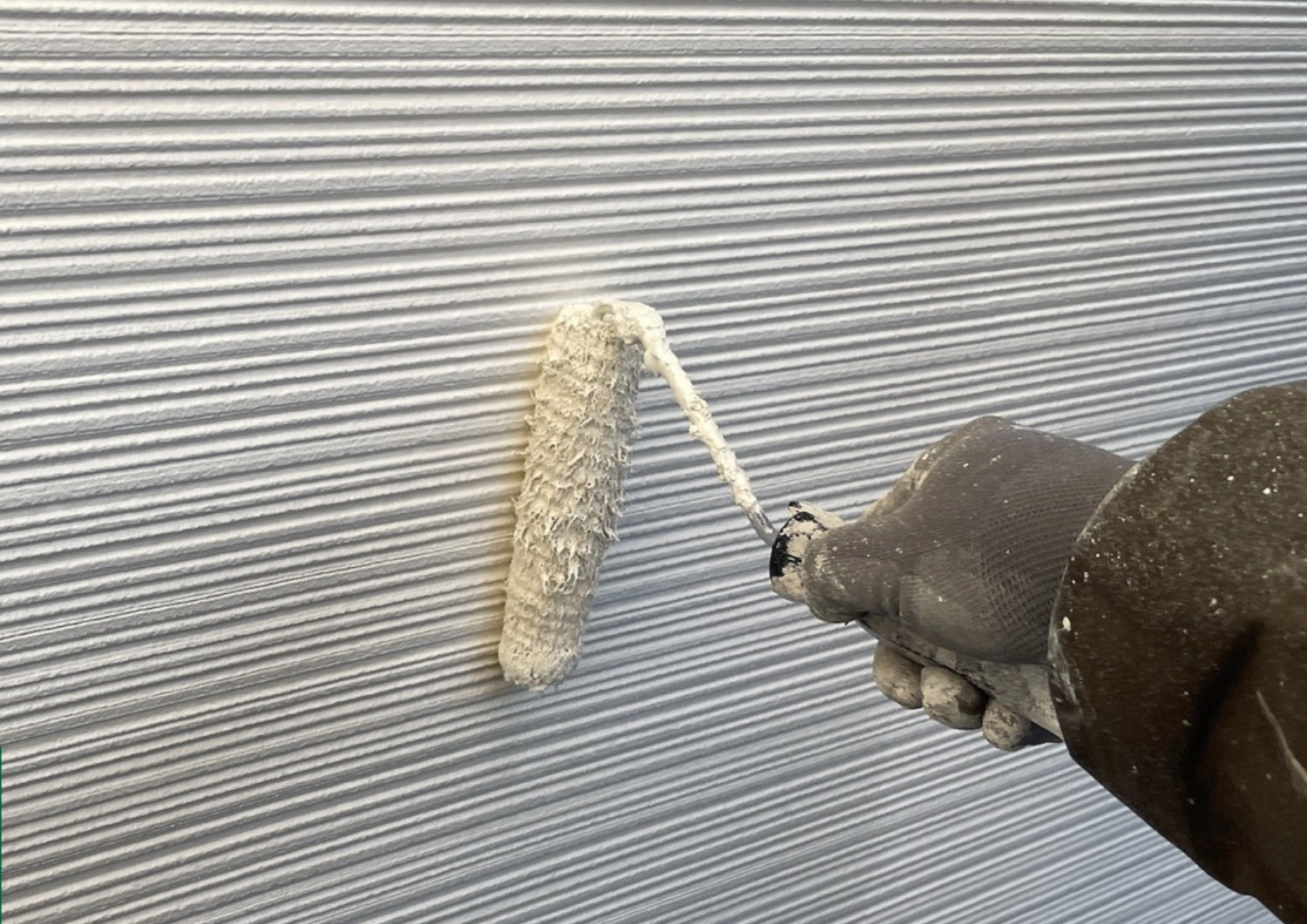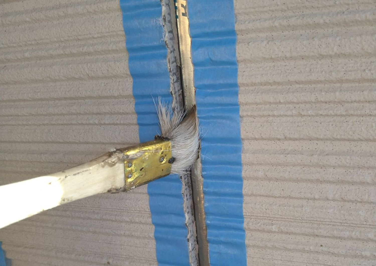 外壁の下塗り状況です。(ブロークンホワイト)