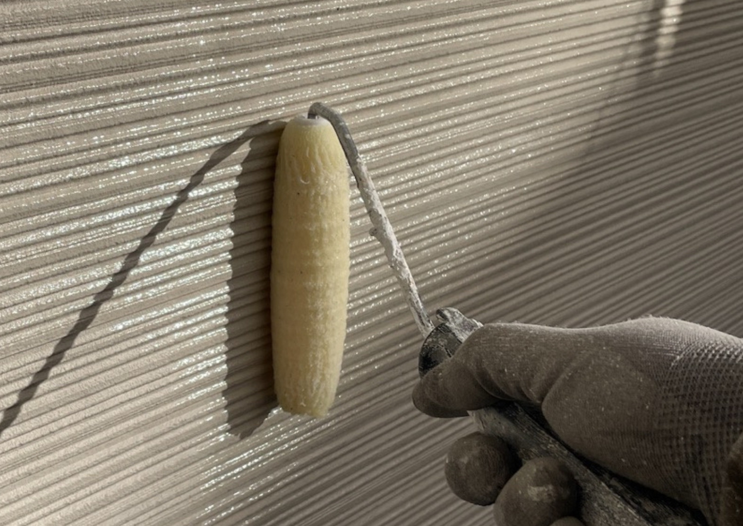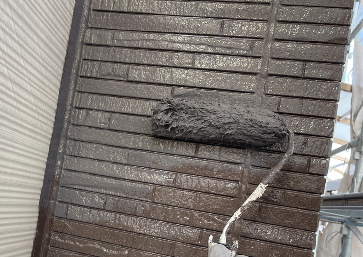 外壁の上塗り状況です。(ブロークンホワイト)